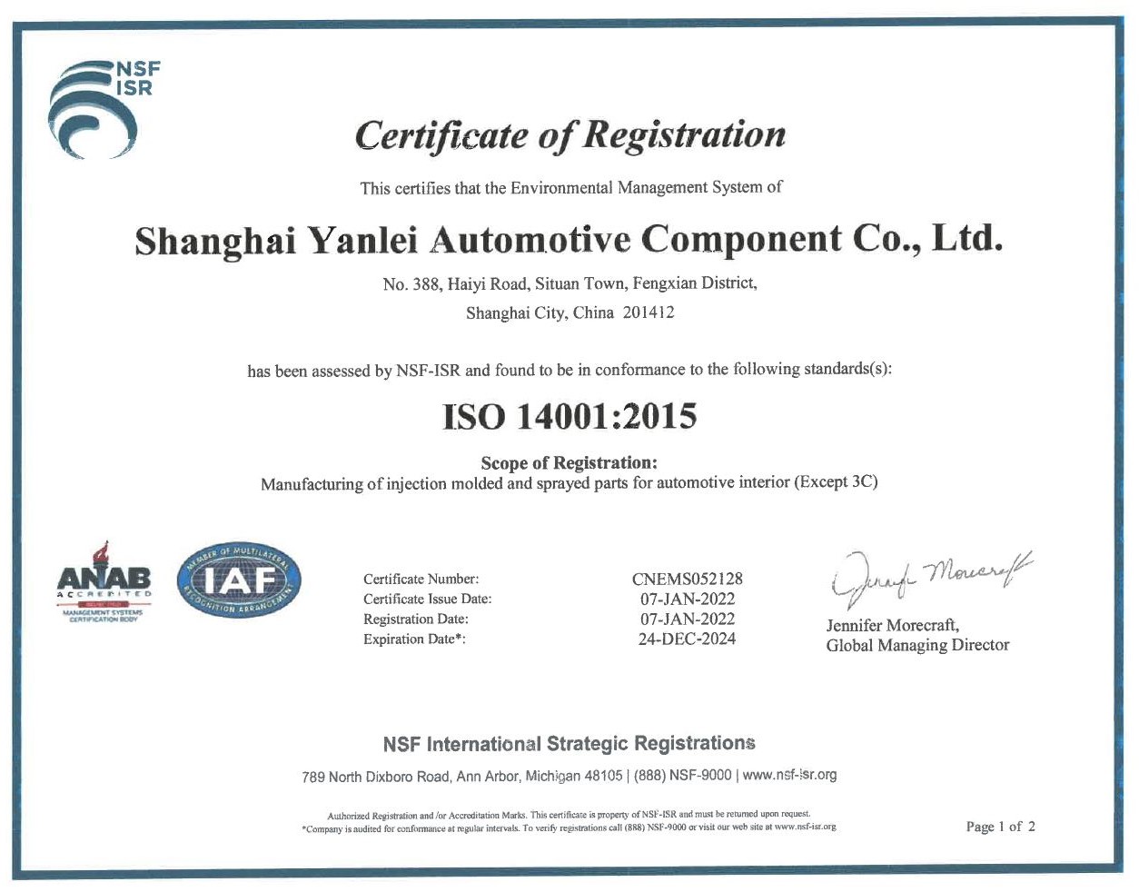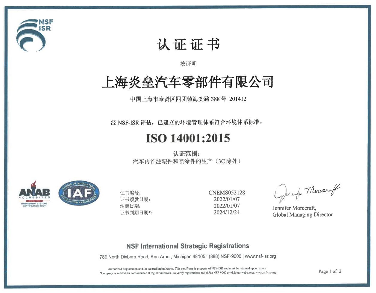 2018年12月份獲得了環(huán)境ISO 14001認(rèn)證證書(shū)